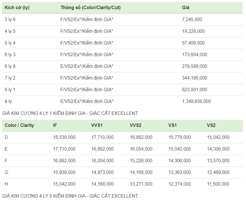 Kim cương kiểm định quốc tế GIA, IGI uy tín thế giới, giá trị toàn cầu. Ex*: Excellent. GIA*: Giấy kiểm định GIA.