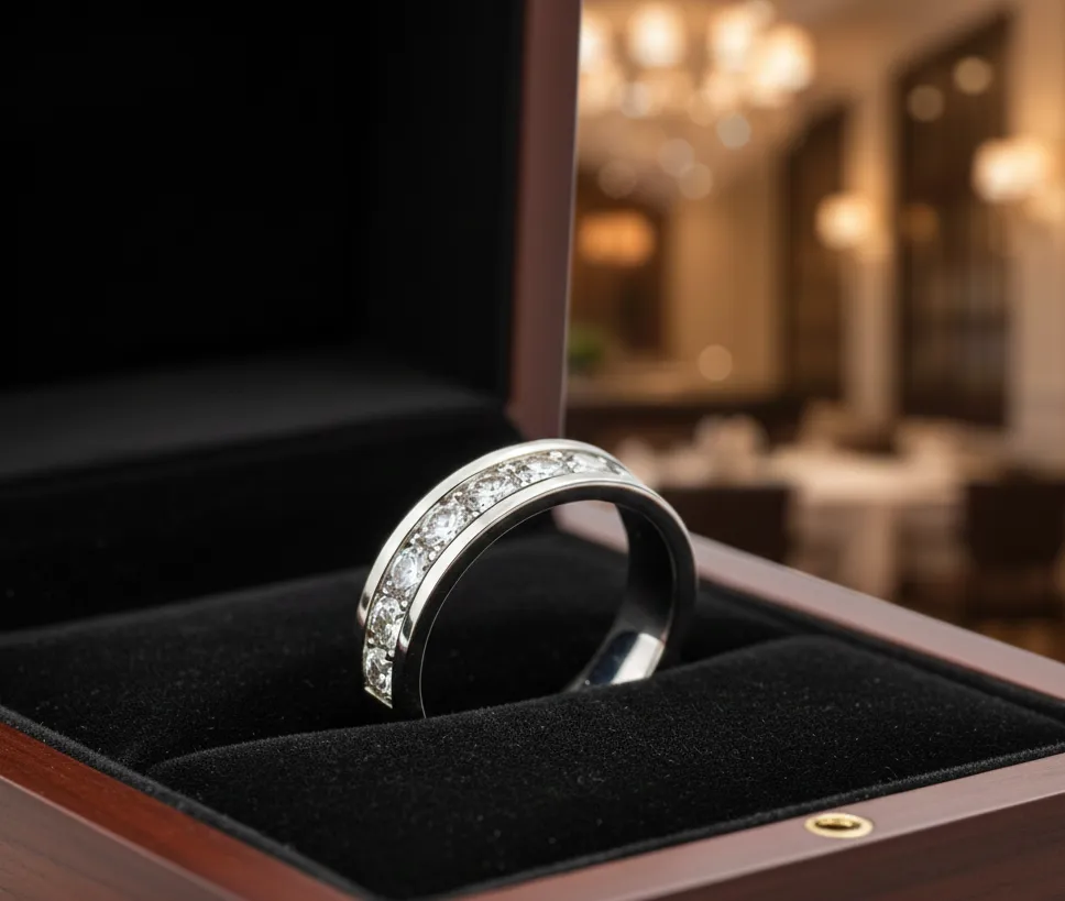 Hãy ưu tiên kiểu chấu bao quanh (Bezel) hoặc chấu rãnh (Channel). Những kiểu chấu này ôm sát vào thân nhẫn, giảm thiểu rủi ro va đập và vướng víu vào dụng cụ thể thao hay quần áo.