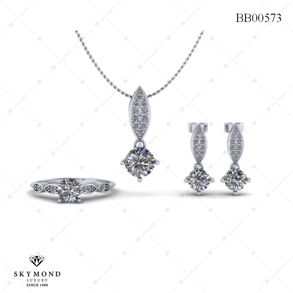 Skymond Luxury sử dụng các chất liệu cao cấp giúp bộ trang sức thiết kế BBK00573 có độ bền, độ sáng trường tồn với thời gian. Kim cương tự nhiên tán sắc lấp lánh không chỉ mang tới vẻ đẹp “tinh tế, sang trọng” tuyệt đối mà còn thể hiện “cá tính riêng nhất, gu thẩm mỹ thời thượng” của phái đẹp.