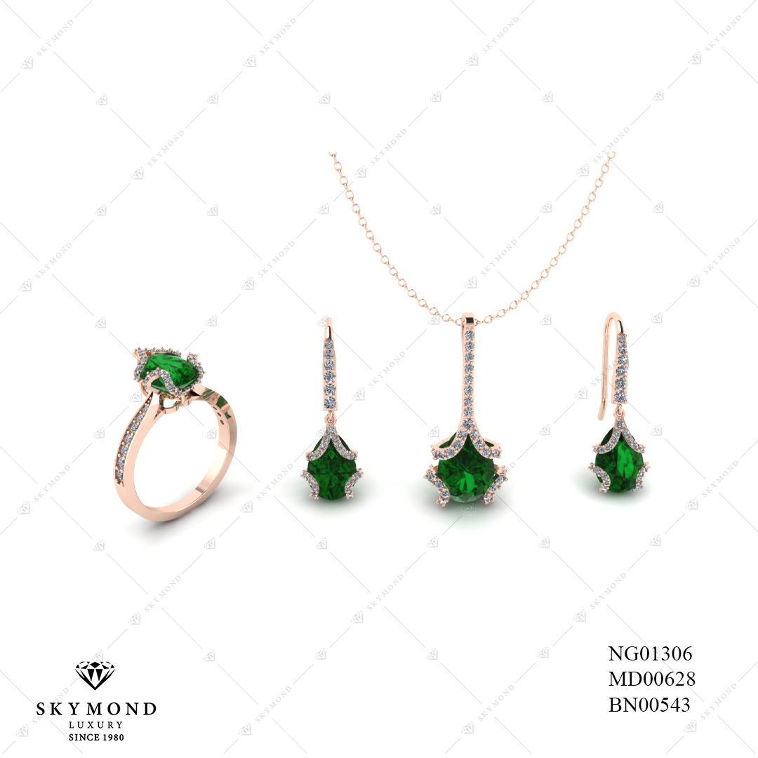 BỘ TRANG SỨC VÀNG HỒNG GẮN ĐẤ EMERALD BN00543
