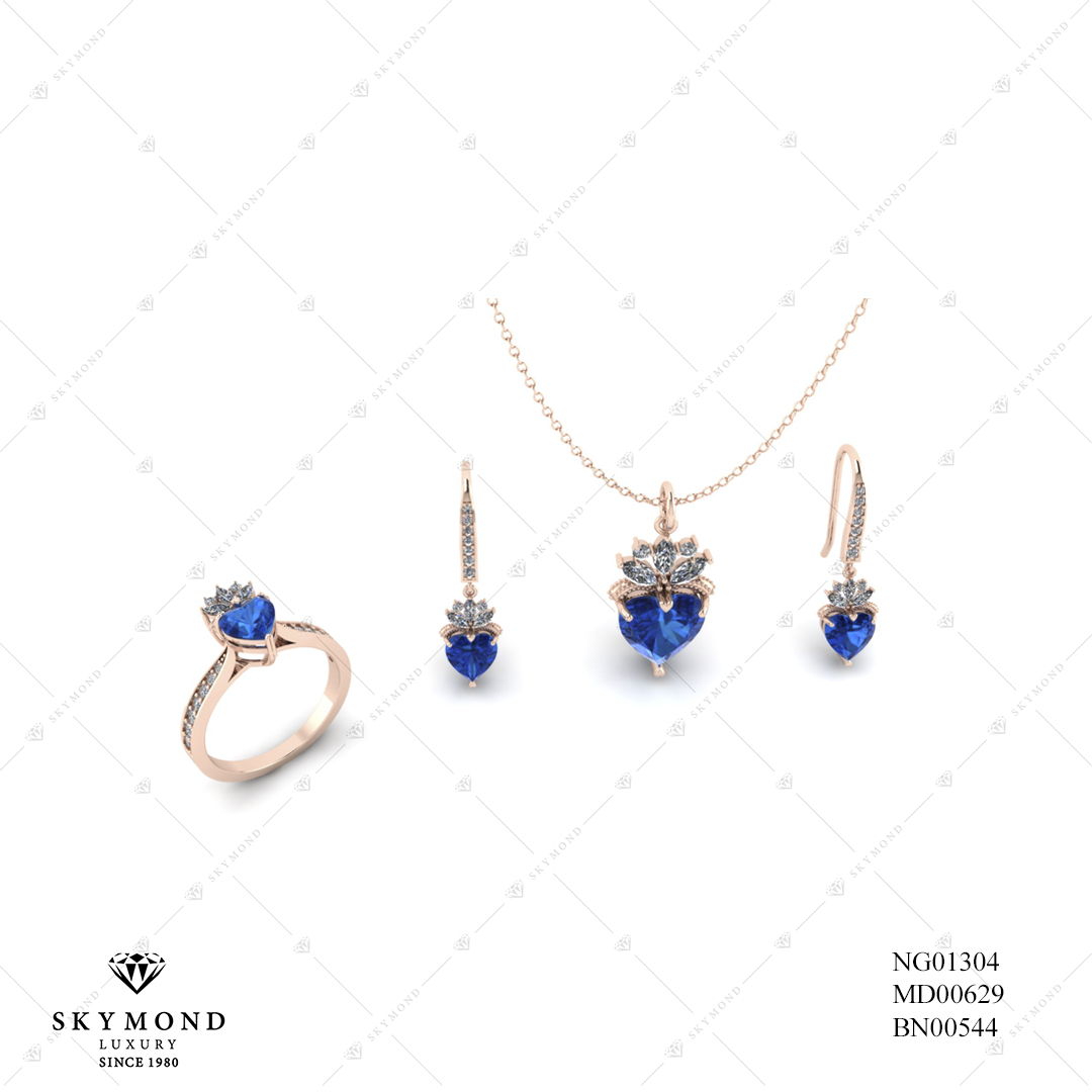Dây chuyền MD00629, nhẫn nữ NG01304 của Skymond Luxury được làm từ chất liệu Vàng hồng. Đặc biệt, thiết kế này được đánh giá cao bởi sự kết hợp đá Sapphire tinh tế, thanh lịch, trẻ trung - đúng với xu hướng chủ đạo của năm 2020. Với bộ trang sức này, phái đẹp sẽ thêm phần tự tin khẳng định gu thời trang độc đáo và cá tính riêng biệt của mình.