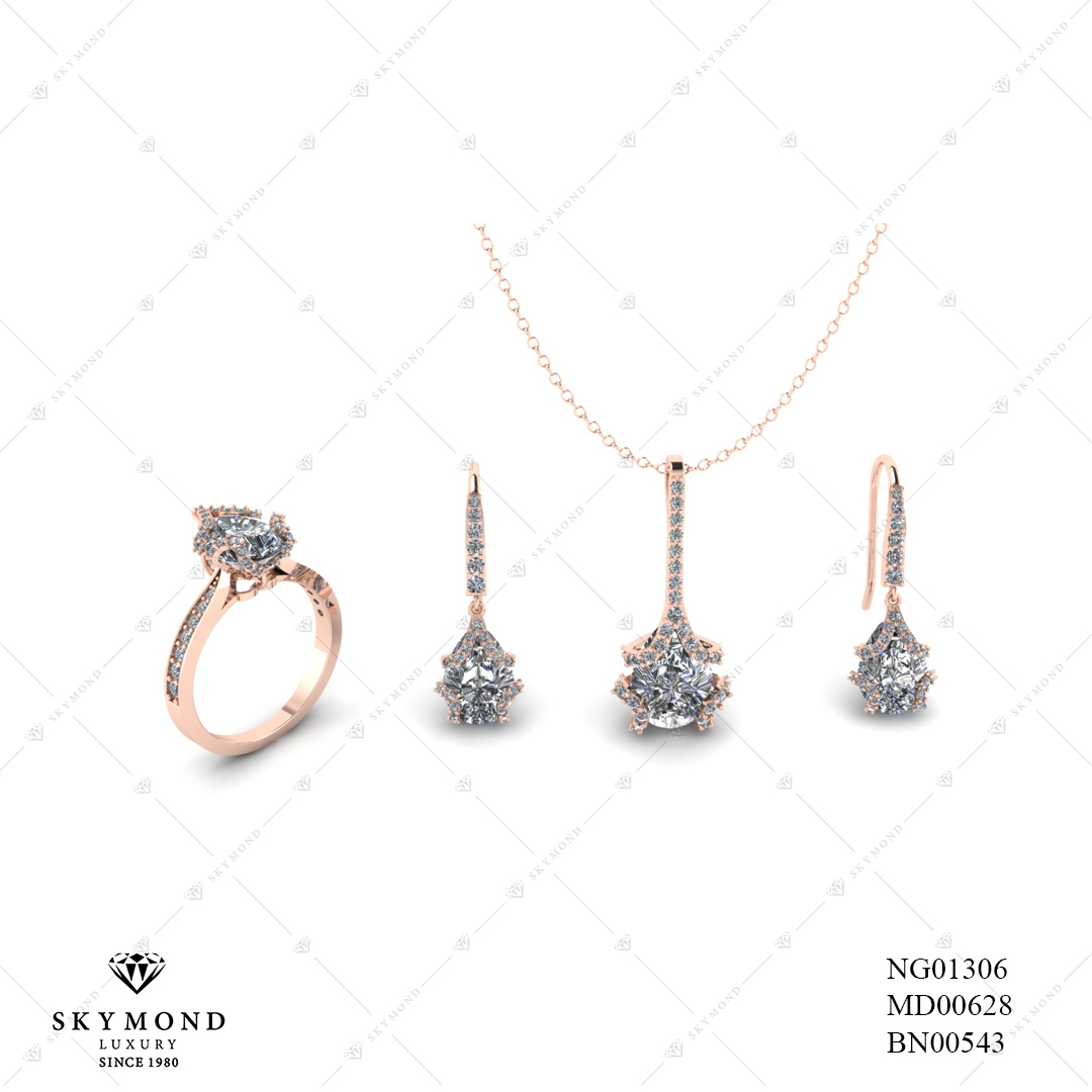 Dây chuyền MD00628, nhẫn nữ NG01306 của Skymond Luxury được làm từ chất liệu Vàng hồng. Đặc biệt, thiết kế này được đánh giá cao bởi sự kết hợp Kim cương tinh tế, thanh lịch, trẻ trung - đúng với xu hướng chủ đạo năm 2020. Với bộ trang sức này, phái đẹp sẽ thêm phần tự tin khẳng định gu thời trang độc đáo và cá tính riêng biệt của mình.