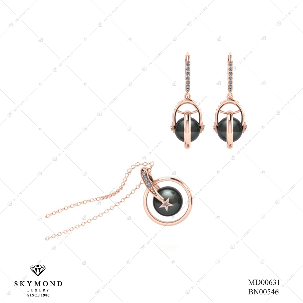 BỘ TRANG SỨC VÀNG HỒNG GẮN NGỌC TRAI ĐEN BN00546