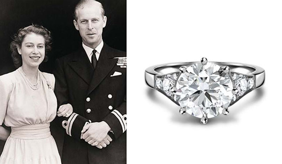 Nữ hoàng Anh Elizabeth II là biểu tượng thời trang của hoàng gia Anh cũng như của thế giới. Phong cách chỉn chu và quý phái của bà sớm được định hình từ nhỏ. Chiếc nhẫn đính hôn của Nữ hoàng với Hoàng tử Philip được làm từ chất liệu Platin. Hoàng tử Philip đã tự tay thiết kế chiếc nhẫn với viên Kim Cương được lấy từ chiếc vương miện của mẹ mình – Công chúa Andrew của Hy Lạp. Nữ hoàng vẫn đeo chiếc nhẫn này hàng ngày bên cạnh nhẫn cưới của mình.