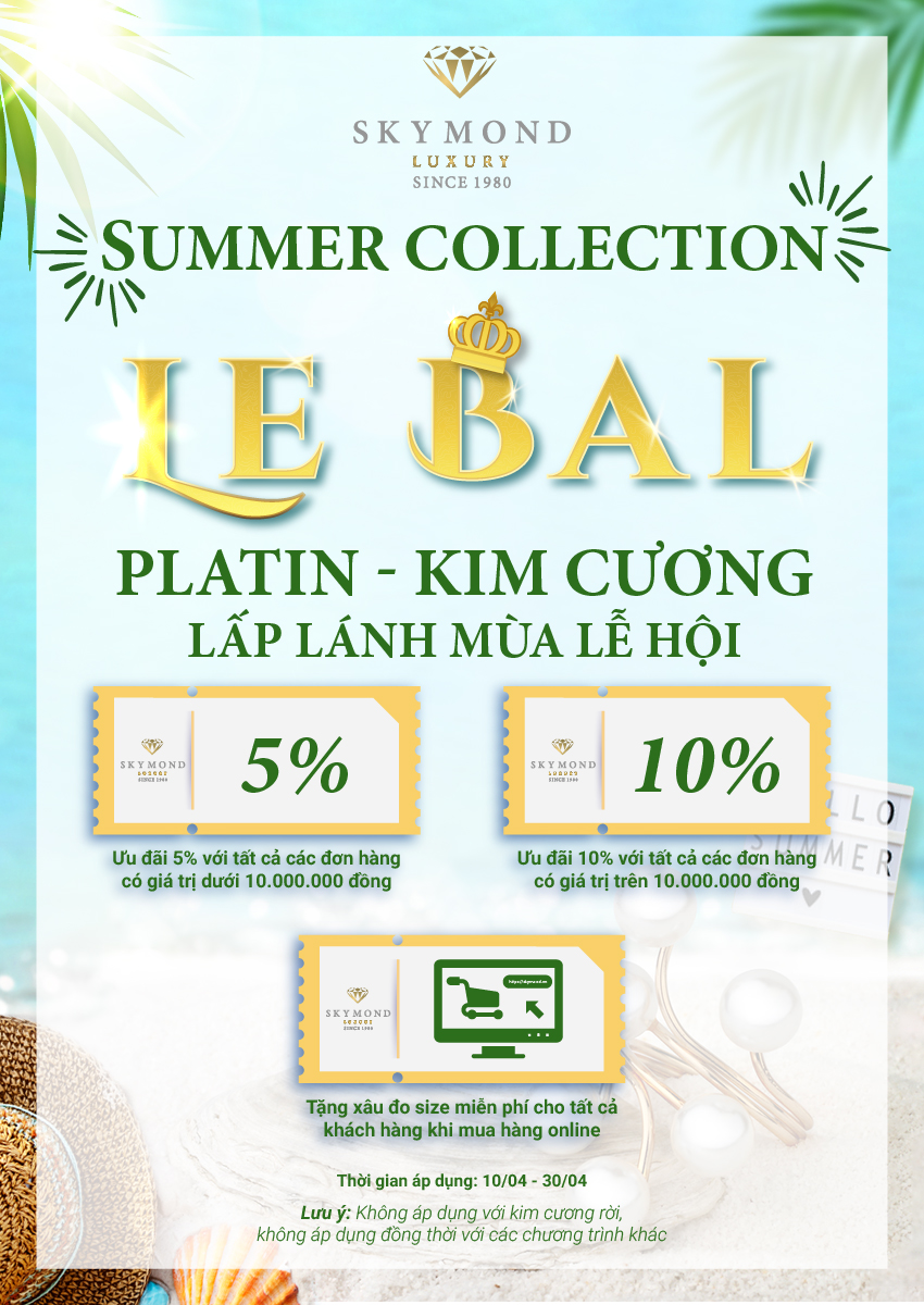 Đến với bữa tiệc ưu đãi mùa hè này, các quý cô của Skymond Luxury sẽ được đắm mình cùng hàng loạt các phiên bản trang sức cao cấp đình đám mang dấu ấn cá nhân từ những chất liệu quý giá bậc nhất: platin, kim cương, ngọc trai thiên nhiên... cùng ưu đãi đặc biệt chưa từng có: