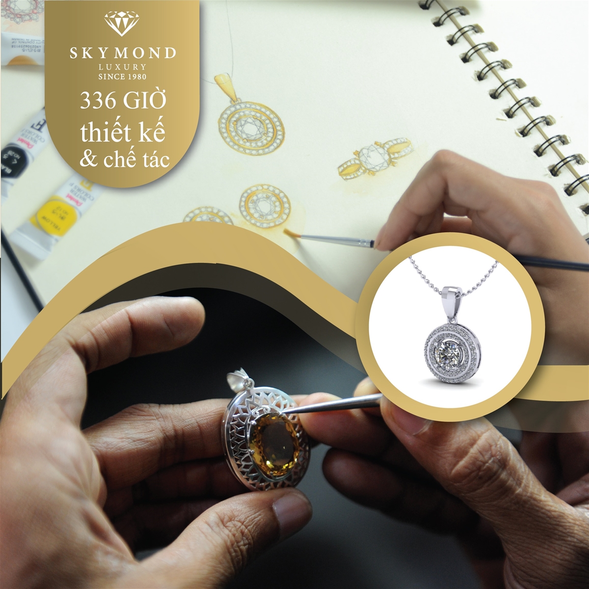 Để tạo ra một tuyệt phẩm trang sức thiết kế thì mỗi nghệ nhân của Skymond Luxury phải mất đến ít nhất 336 giờ cùng 56 công đoạn chế tác khép kín. Chính vì lẽ đó, mỗi mẫu thiết kế đều mang vẻ đẹp và cái chất rất riêng và nhận sự tin tưởng của hàng triệu khách hàng trong nước và trên toàn thế giới.