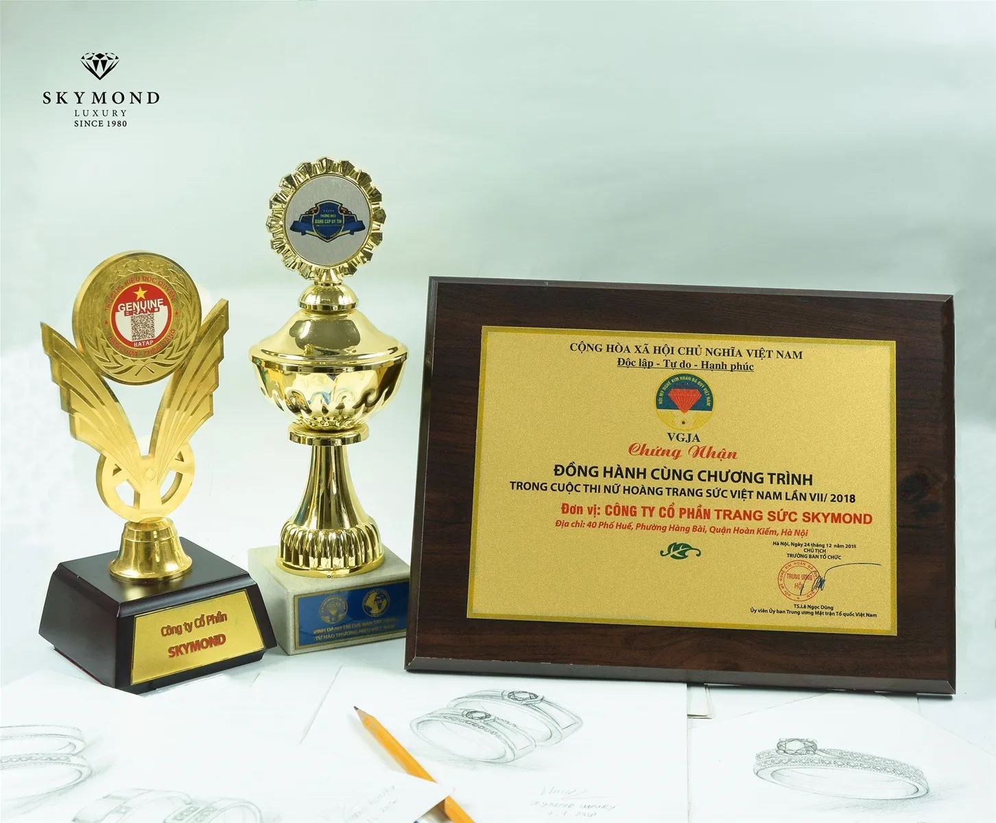 Cùng với đó là đam mê và những nỗ lực không ngừng nghỉ, Skymond Luxury luôn cho ra đời những sản phẩm chất lượng dựa trên tiêu chí hàng đầu Tin cây - Độc đáo - Đẳng cấp. Thương hiệu cũng vô cùng vinh dự khi sản phẩm của Skymond Luxury được hội Kim Hoàn Đá Quý Việt Nam chứng nhận và trao cho danh hiệu "Thiết Kế Trang Sức Platin hàng đầu Việt Nam".