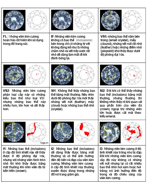 Kim cương thật thường có những khiếm khuyết ở bên trong bởi nó được tạo ra hoàn toàn tự nhiên. Khi đánh giá viên đá của bạn, thì hãy cân nhắc kỹ lưỡng đến độ hoàn hảo bên trong nó, bởi đó chỉ là một yếu tố cho thấy đó là hàng thật. Hãy nhớ rằng những viên kim cương nhân tạo hình thành trong môi trường được kiểm soát chặt chẽ có thể vô cùng hoàn mỹ. Kim cương tổng hợp vẫn có giá trị mặc dù ít hơn so với kim cương tự nhiên. Nếu viên đá của bạn có trực quan hoàn hảo thì nó vẫn khả năng là kim cương tự nhiên. Luôn tồn tại những viên tự nhiên không tì vết và chúng có giá trị gấp nhiều lần kim cương tổng hợp.