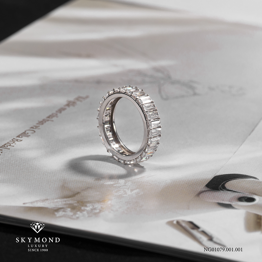 - Điểm nhấn kỹ thuật: Platin giúp giữ cho các chấu nhẫn cực kỳ mảnh nhưng lại vô cùng chắc chắn, giúp các viên đá nhỏ li ti không bị rơi rụng trong quá trình hoạt động hàng ngày.
