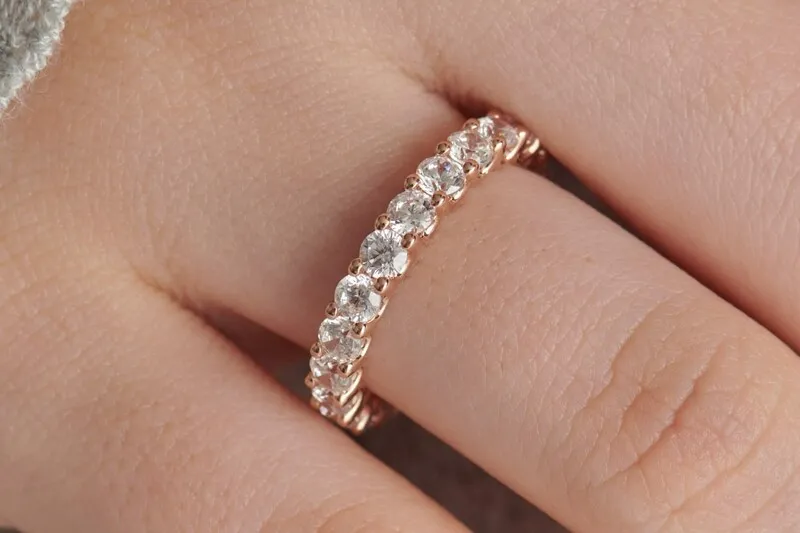 Nhẫn Eternity (còn gọi là Infinity Ring) là loại nhẫn có đai được chế tác từ kim loại quý (như Platin hoặc Vàng) và được nạm những viên đá quý – phổ biến nhất là kim cương – bao quanh toàn bộ vòng nhẫn.