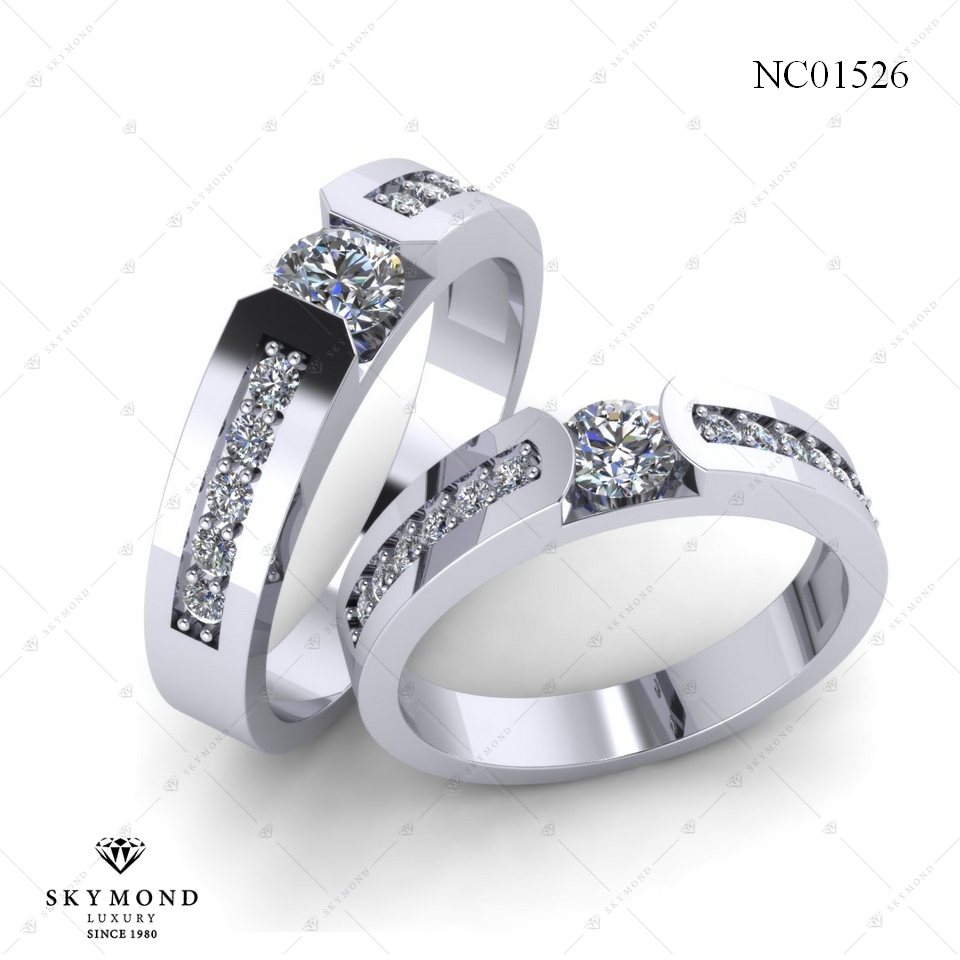 Trong các chất liệu làm nhẫn cưới, chỉ có Platinum - chất liệu quý hiếm bậc nhất thế giới mới đủ độ độ bền, độ cứng, độ sáng thách thức tác động của môi trường xung quanh cũng như xứng tầm bao bọc lấy viên Kim cương. Nhờ sắc trắng thuần khiết của Platinum, Kim cương được gia tăng vẻ đẹp rực rỡ và mỹ miều. Đeo trên tay cặp nhẫn cưới Platinum gắn Kim cương NC01526 như mang bên mình vật chứng tượng trưng cho sức mạnh quyền lực, giàu sang cũng như gu thời trang tinh tế của đôi lứa.