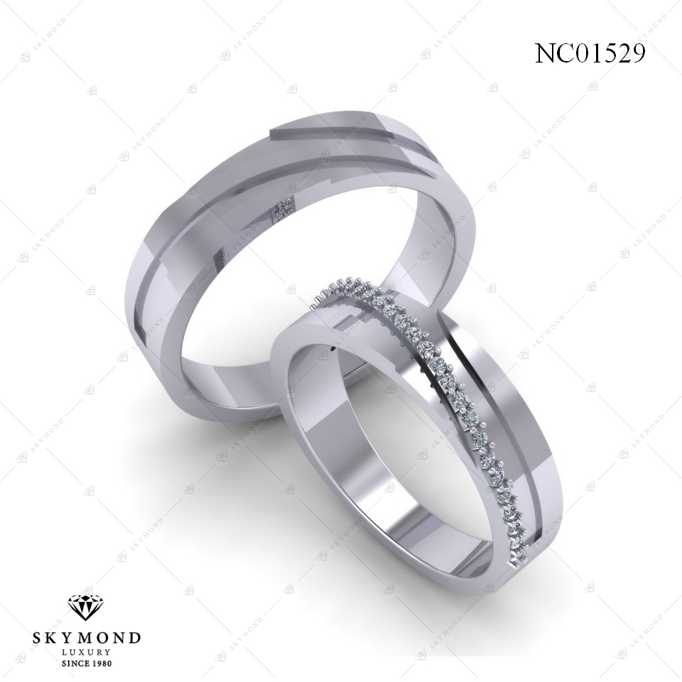 Trong các chất liệu làm nhẫn cưới, chỉ có Platinum - chất liệu quý hiếm bậc nhất thế giới mới đủ độ độ bền, độ cứng, độ sáng thách thức tác động của môi trường xung quanh cũng như xứng tầm bao bọc lấy viên Kim cương. Nhờ sắc trắng thuần khiết của Platinum, Kim cương được gia tăng vẻ đẹp rực rỡ và mỹ miều. Đeo trên tay cặp nhẫn cưới Platinum gắn Kim cương NC01529 như mang bên mình vật chứng tượng trưng cho sức mạnh quyền lực, giàu sang cũng như gu thời trang tinh tế của đôi lứa.