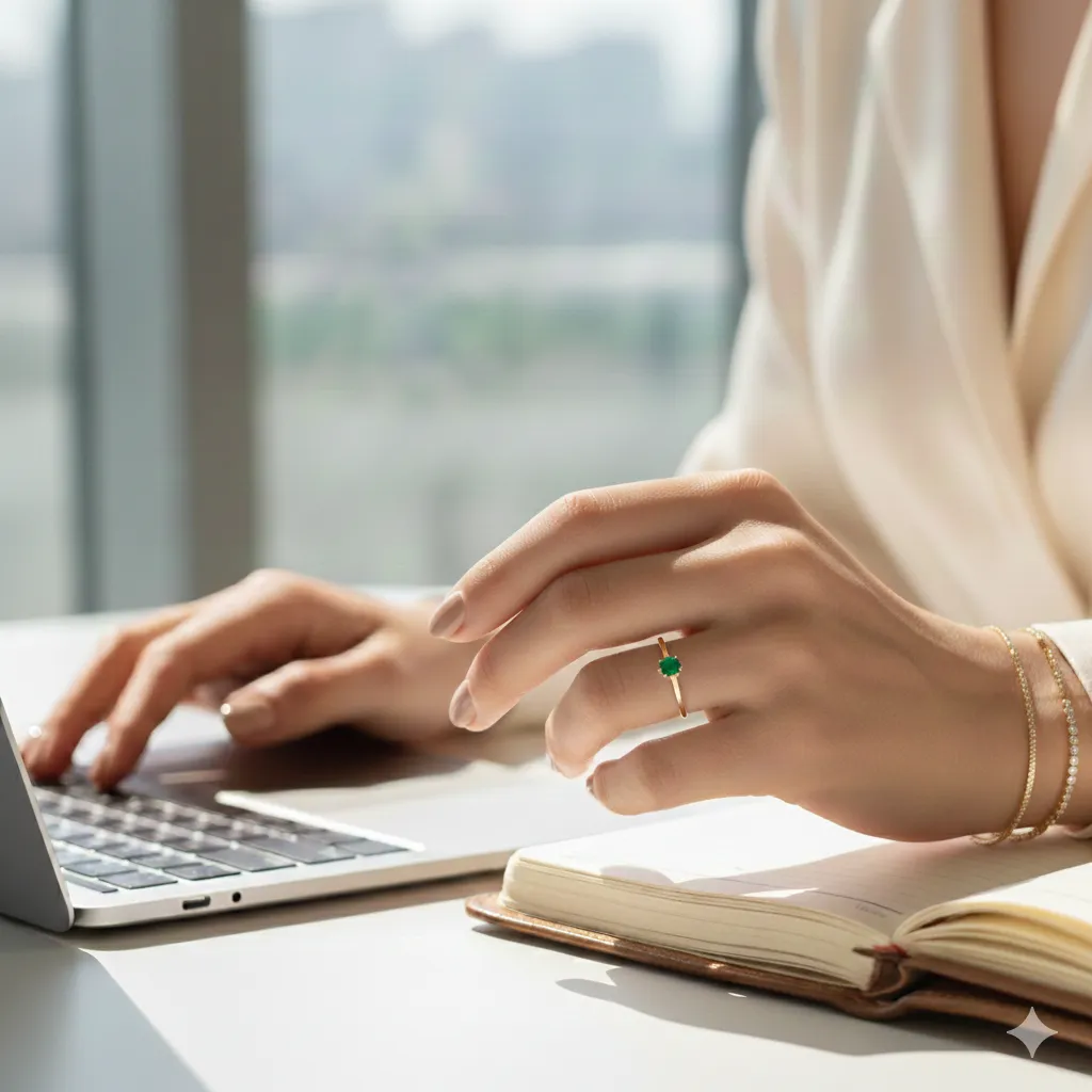 Tuổi trẻ là để dấn thân, nhưng sức người có hạn. Những chiếc nhẫn gắn đá màu sắc dịu nhẹ như Aquamarine hay Morganite giúp điều hòa nhịp tim và hơi thở, giữ cho tinh thần luôn tỉnh táo và bền bỉ suốt 8 tiếng tại văn phòng. Đây là cách mà các cô gái hiện đại chọn để "tự chữa lành" và nạp năng lượng ngay tại bàn làm việc.