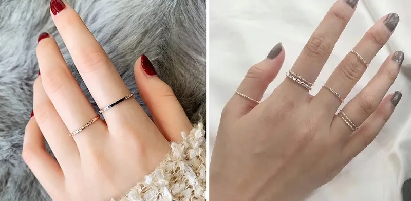 Bạn có thể đeo hai chiếc nhẫn tạo nên sự phá cách nếu bạn có ngón tay dài. Không chỉ vậy nó có thể khiến tay của bạn nhìn trông cân đối hơn.