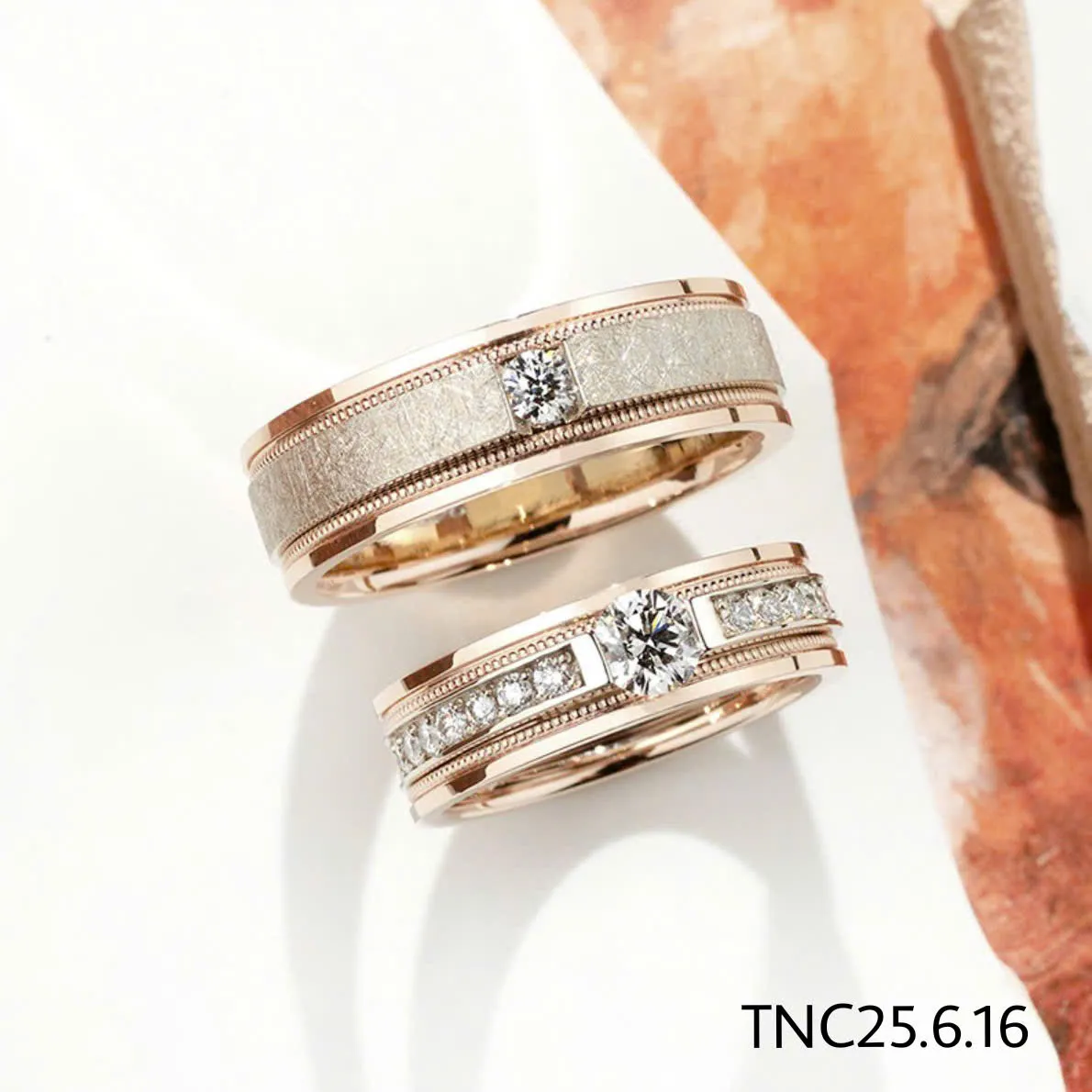 Mỗi cặp đôi là một cá thể duy nhất. Việc lựa chọn từ chất liệu (Vàng trắng, Vàng hồng hay Platin) đến kiểu giác cắt của kim cương (Round, Princess, hay Emerald) giúp chiếc nhẫn mang đậm dấu ấn cá nhân.