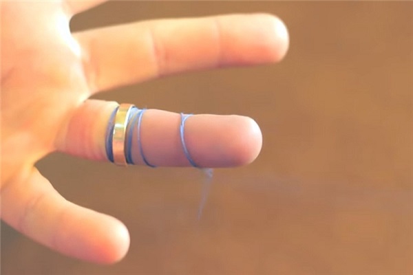 Bước 3: Dùng đầu dây A quấn dây theo chiều ngược lại để kéo nhẫn ra, lúc này nhẫn sẽ theo sợi dây chạy ra không còn kẹt ở tay bạn nữa.