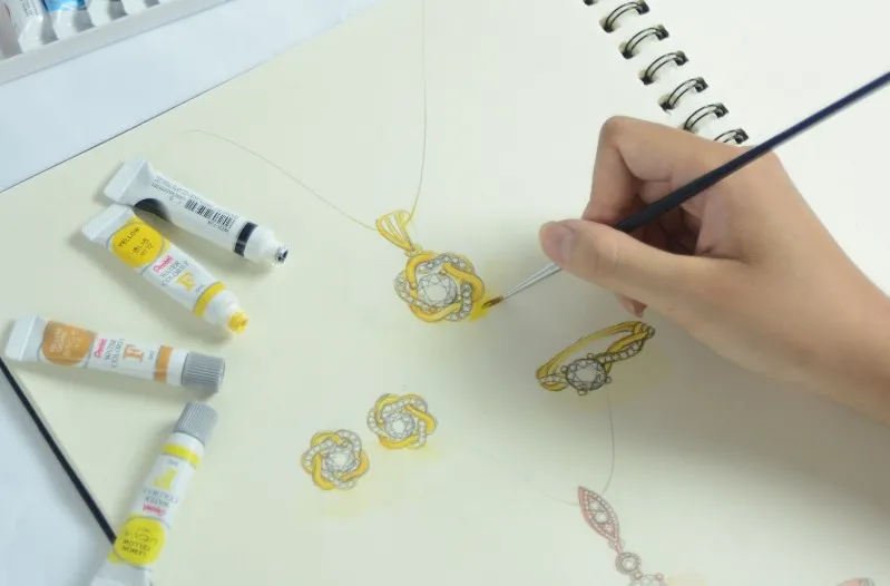 Sau khi hoàn thiện ý tưởng phác thảo tay, nhóm thiết kế chuyển sang phần mềm thiết kế 3D chuyên nghiệp như RhinoGold và Matrix để tạo dựng mô hình kỹ thuật số. Đây là bước đặc biệt quan trọng giúp kiểm soát tỷ lệ, kiểm nghiệm khả năng chế tác, lựa chọn kiểu dáng đá quý và dự đoán hiệu ứng ánh sáng thực tế khi thành phẩm hoàn thiện.