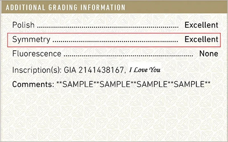 - Symmetry: Sự cân đối giữa các mặt. Nếu Symmetry kém, ánh sáng sẽ bị rò rỉ ra ngoài thay vì phản xạ lại mắt người nhìn.