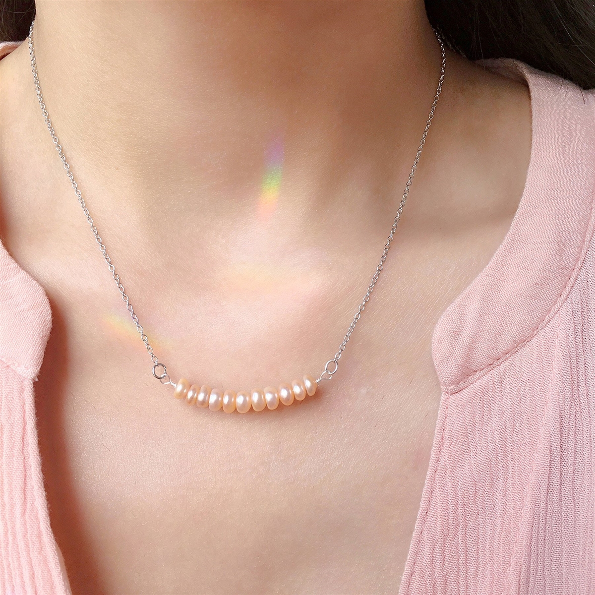 Chiếc vòng cổ Ngọc Trai dạng chuỗi hạt có thể khiến bạn trông già dặn hơn bình thường. Thay vào đó, bạn nên sử dụng một chiếc vòng chất liệu kim loại kết hợp với mặt dây Ngọc Trai sẽ tạo nên vẻ trẻ trung, xinh đẹp hơn khi kết hợp với áo sơ mi.