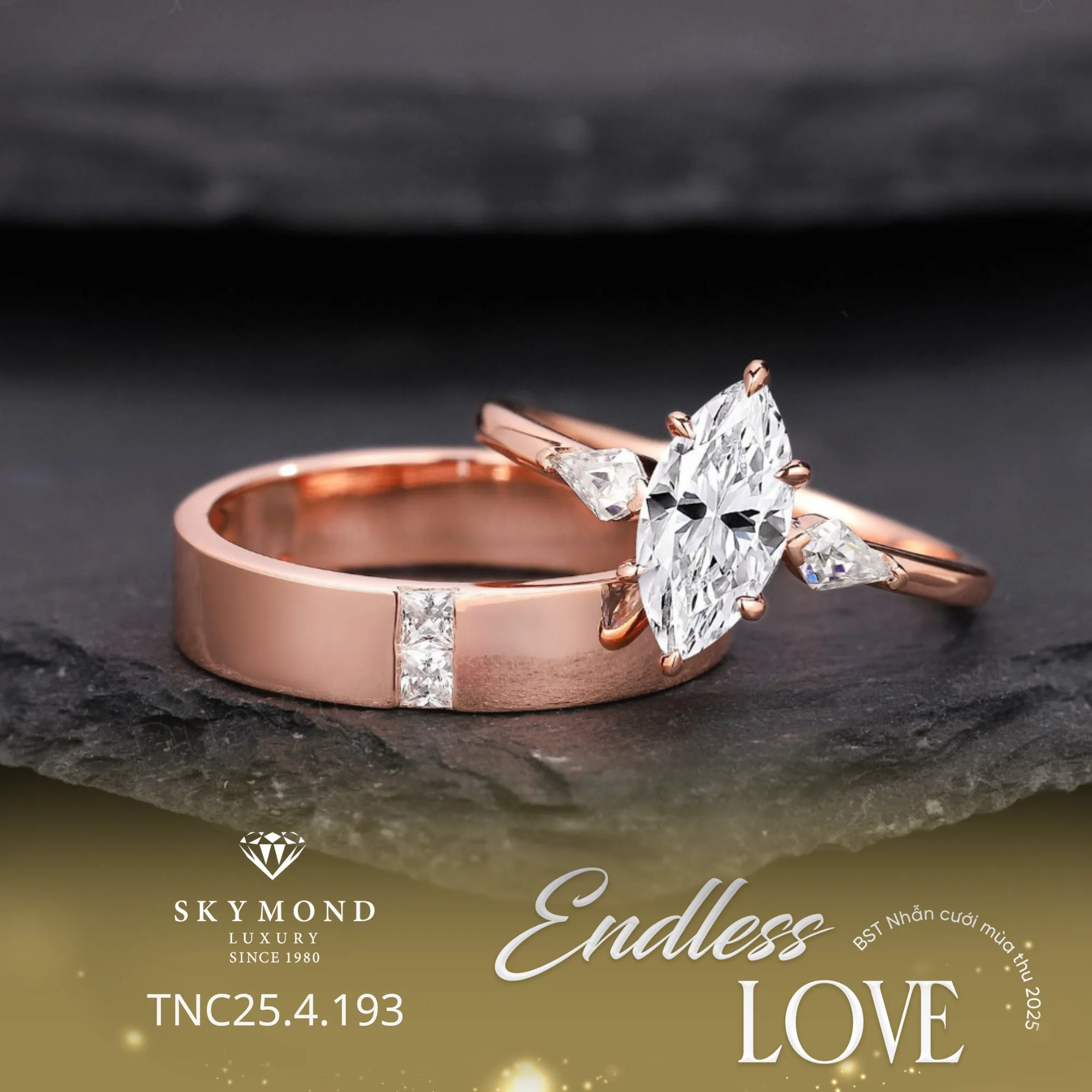 Không nhất thiết phải giống hệt nhau, nhưng các cặp nhẫn 2026 hướng tới sự liên kết bằng những chi tiết nhỏ. Ví dụ, nhẫn nam có thể đính một viên kim cương chìm (Princess cut) mạnh mẽ, trong khi nhẫn nữ lộng lẫy với dải đá tấm bao quanh.